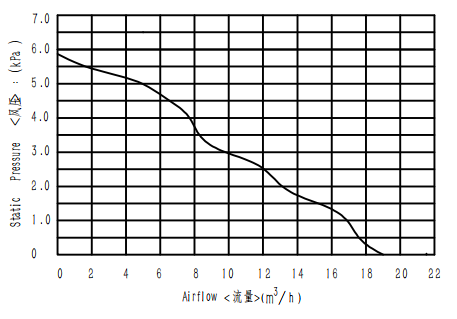WS7040-12-X200 blower can reach maximum 18m3/h airflow at 0 kpa pressure and maximum 5.5kpa static pressure. It has maximum output air power when this blower run at 3kPa resistance if we set 100% PWM. It has maximum efficiency when this blower run at 5.5kPa resistance if we set 100% PWM. Other load point performance refer to below P-Q curve: