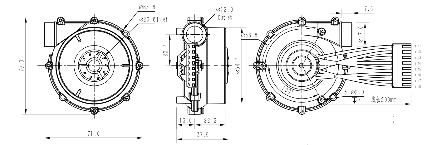 | Motor type:Three Phase DC Brushless Motor | Unit size: D70mm *H37mm |